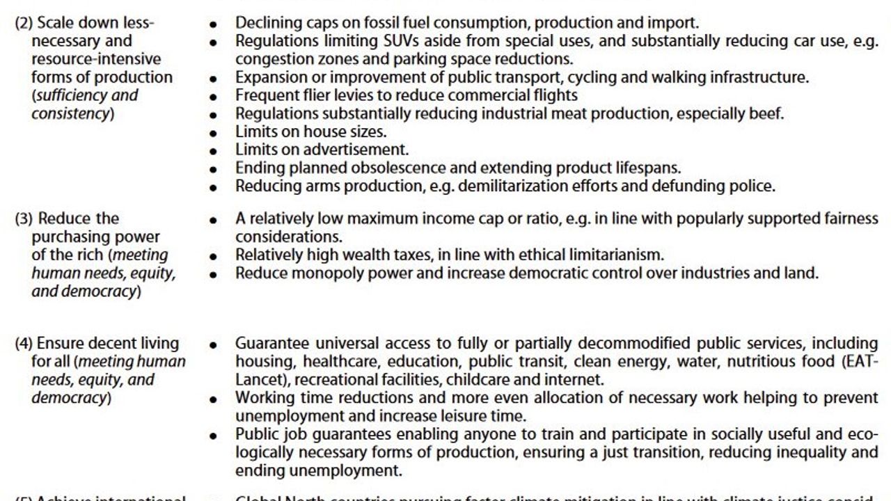 Here, we explore actionable policies and strategies that challenge the conventional pursuit of economic growth, focusing instead on enhancing well-being for all within our planet's ecological limits. From guaranteeing universally basic services and redistributing wealth to prioritising local economies and increasing workplace democracy, these policies are about making bold choices for the health of our planet and the betterment of our communities.