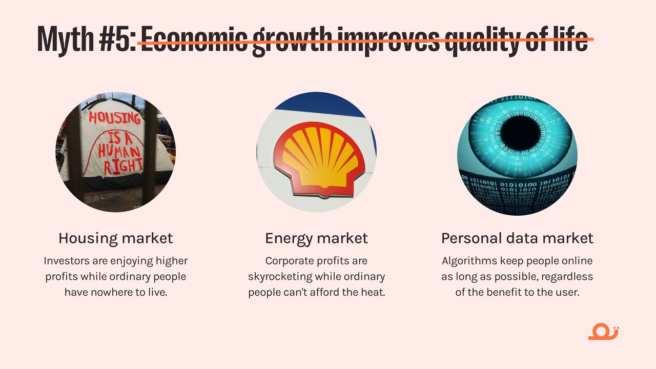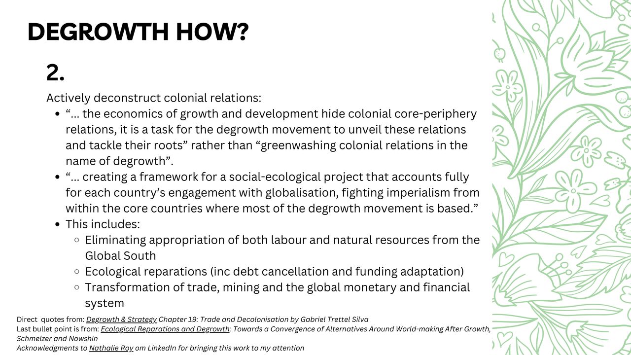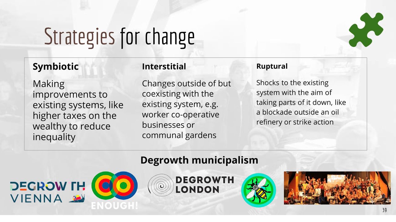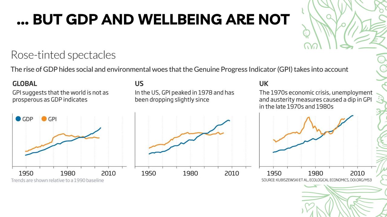 This presentation is a wonderfully visualised story of growth and degrowth. This presentation is perfect for an introductory workshop or talk about degrowth. These slides were made by Erin Remblance (external link), co-founder of (re)Biz (external link) "the most (re)volutionary leadership workshop on the planet".