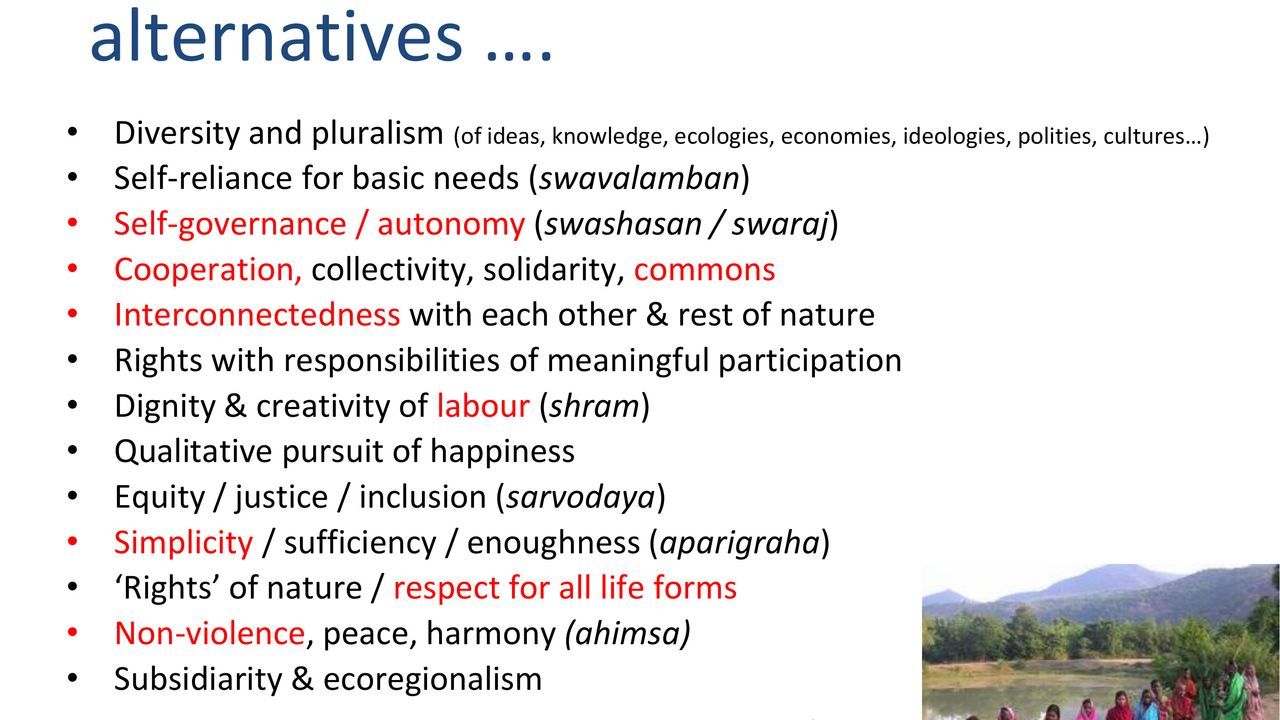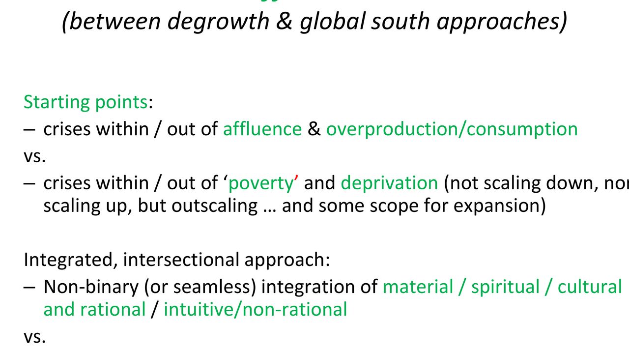 This presentation is about post-development worldviews that push us to think beyond degrowth. It is filled with real-life examples of radical alternatives as well as a framework of transformation emerging from grounded alternatives. This presentation is perfect for people who are already aware of degrowth and want to expand their knowledge beyond it. These slides were made by members of Ashish Kothari (external link), co-founder of the Global Tapestry of Alternatives. (external link)